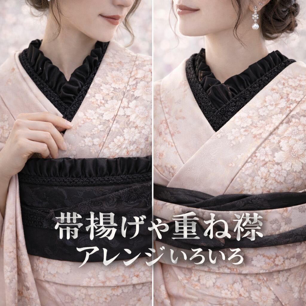 卒業式 袴 着物帯揚げ アレンジ フリル付け襟 和洋ミックス 半衿風 ブラック